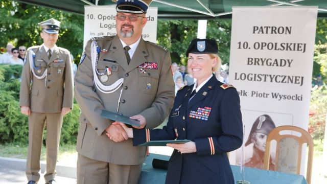 10 Opolskiej Brygadzie Logistycznej dziękował także za zaangażowanie i wzorową służbę Antoni Konopka, członek Zarządu Województwa, podkreślając, że jest ona najlepszym ambasadorem regionu na świecie i że na jej żołnierzy można zawsze liczyć. Na zakończenie uroczystości odbyła się defilada pododdziałów oraz koncert Orkiestry Wojsk Lotniczych z Poznania. Licznie przybyli mieszkańcy Opola zaproszeni zostali na wojskową grochówkę.