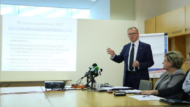 W ramach tej sumy na samą ochronę zdrowia planowana jest kwota 7,2 mln złotych, na pomoc społeczną – 5,7 mln złotych oraz 800 tys. na szeroko rozumianą sferę rodzinną. W sumie wydatki zdrowotne stanowić będą 2,7 proc. wydatków budżetu województwa na rok 2017. Ponieważ zakłady opieki zdrowotnej, dla których podmiotem tworzącym jest samorząd województwa, zgłosiły swoje potrzeby inwestycyjne na kwotę ponad 49 mln złotych, w budżecie na wkłady własne do projektów unijnych zarezerwowano dla nich kwotę 3 mln złotych. Planowane jest także powstanie regionalnej platformy informacji o pacjencie, co kosztować będzie około 2,25 mln złotych. Budowę bazy śmigłowcowej Lotniczego Pogotowia Ratunkowego w Polskiej Nowej Wsi samorząd wesprze łączną kwotą 3,71 mln złotych. – Ilość pieniędzy przeznaczona z budżetu samorządu na ochronę zdrowia jest niewystarczająca, natomiast tak optymistycznej sytuacji, gdy idzie o programy zdrowotne, realizowane z funduszy unijnych jeszcze nie było – komentował wicemarszałek Roman Kolek. M. in. ponad 10 mln złotych przeznaczonych zostanie na realizację regionalnego programu walki z chorobami cywilizacyjnymi – nadwagą, otyłością, cukrzycą, ponad 33 mln złotych na opiekę okołoporodową nad matką i dzieckiem, ponad 8 mln złotych na profilaktykę jelita grubego i ponad 4 mln złotych na profilaktykę raka piersi. Na rok przyszły zaplanowano osiem naborów konkursowych na projekty związane z profilaktyką zdrowotną i wysokiej jakości usługami zdrowotnymi i społecznymi.