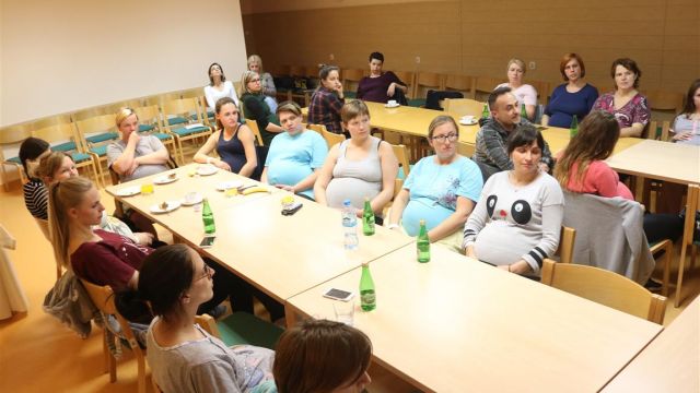 Kilkanaście przyszłych mam i wyjątkowo kilku mężczyzn, uczestniczyło w spotkaniu, którego celem było motywowanie do radosnego macierzyństwa.