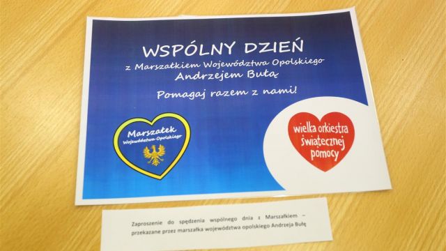 Marszałek Andrzej Buła zaprosił do wylicytowania spędzenia wspólnego dnia w pracy z marszałkiem. – Zapraszam do spędzenia tego czasu ze mną od 7.30, ale nie mogę powiedzieć do której – bo czas pracy marszałka nie ma końca – mówił. Tym razem również nie zabrakło prezentu sportowego od marszałka, prywatne pasjonata sportu – był to zestaw sportowy: torba, kijki do nordic walking, mini piłka, słuchawki bezprzewodowe i ręcznik. Sportowe prezenty przekazał także wicemarszałek Roman Kolek – podarował koszulkę zawodnika kędzierzyńskiej ZAKSY z podpisami zawodników klubu oraz kijki do nordic walking wraz z zaproszeniem do wspólnego udziału w wybranej imprezie nordic walking.