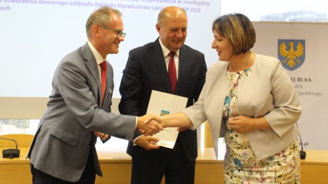 Opolskie Centrum Rehabilitacji w Korfantowie dzięki wcześniejszemu projektowi zakupiło już nowoczesny rentgen cyfrowy wspomagający diagnostykę pacjentów ortopedycznych, detektor kończyny dolnej oraz doskonałej jakości artroskop, wchodząc w nowe dziedziny artroskopii biodra i barku (dotychczas jedynie kolana). Kolejna, podpisana umowa umożliwi doposażenie oddziału rehabilitacji neurologicznej, poprawi warunki pobytu pacjentów. Dwie sale zyskają funkcję całodobowego nadzoru medycznego. Zakupiony zostanie nowoczesny sprzęt rehabilitacyjny. – To m.in. platforma służąca do utrzymania równowagi, co jest bardzo ważne dla pacjentów neurologicznych, ale również rękawica, stymulująca ruchy chorego, które są zaburzone przez choroby i dysfunkcje. Pojawi się również nowoczesne oprogramowanie dla logopedów – wymienia Wojciech Machelski, dyrektor OCR w Korfantowie.