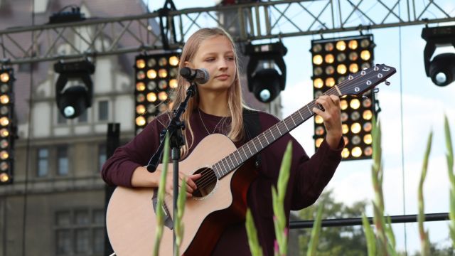 Publiczność grą na gitarze i śpiewem zachwyciła Klaudia Seget z Gogolina. – Bardzo mi się tutaj podoba. Muzyka to moja pasja. Kiedy byłam mała bardzo chciałam, aby rodzice zapisali mnie na lekcje muzyczne – opowiada Klaudia. O talencie mówi też jej ojciec Joachim Seget. – Trwa to kilkanaście lat, córka pięknie gra i się rozwija. Jej starsza siostra gra na pianinie i organach. Klaudia zawsze chciała mieć instrument, który można zabrać ze sobą i postawiła na gitarę. Jestem z niej bardzo dumny i szczęśliwy – dodaje Joachim Seget.