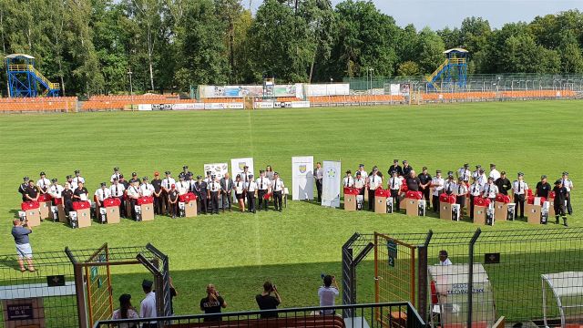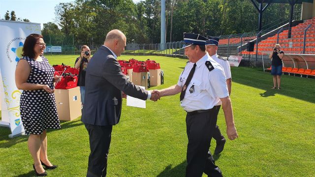 Przekazanie sprzętu strażakom z powiatu kluczborskiego odbyło się na stadionie centrum sportowego Stobrawa w Kluczborku. Michał Czuba z OSP Paruszowice jest pewien, że teraz zwiększy się bezpieczeństwo ochotników. – Będziemy mogli jeszcze sprawniej pomagać, a jednocześnie będziemy lepiej chronieni. Od początku roku zmieniły się zasady naszej pracy. Dezynfekujemy sprzęt, jesteśmy bardziej ostrożni – mówi. Artur Nowak społecznik, strażak, a jednocześnie członek zarządu powiatu kluczborskiego, uważa, że to pierwsza tak szeroko zakrojona akcja skierowana do strażaków. – Taka akcja nie miała jeszcze miejsca w województwie opolskim. Dziś wszystkie nasze jednostki otrzymały niezbędny do ochrony sprzęt. W dobie COVID-19 jest to konieczne. Daje to poczucie bezpieczeństwa i pewności udzielania skutecznej pomocy – podkreśla Artur Nowak.