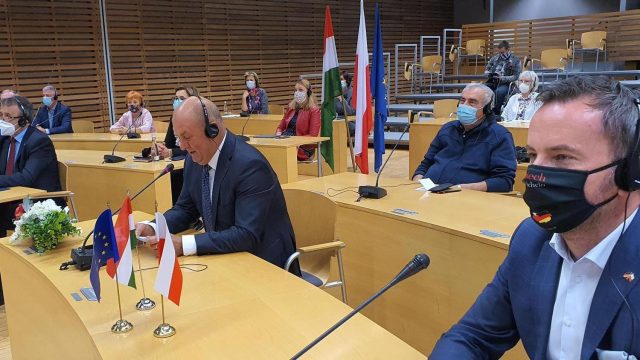 W sali Orła Białego na Ostrówku odbyło się uroczyste posiedzenie Komisji Współpracy z Zagranicą, Turystyki i Promocji Regionu Sejmiku Województwa z udziałem marszałków Andrzeja Buły i Romana Kolka oraz przewodniczącego Sejmiku Rafała Bartka. W trakcie spotkania łączono się z partnerami z Węgier.
