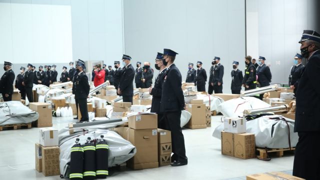 – Odebraliśmy m.in. namioty i sprzęt potrzebny do obsługi, podgrzewacze, nagrzewnice – mówi Wojciech Bieszczad z jednostki ratownictwa specjalistycznego ze Skarbimierza. Zbigniew Supień z OSP Niwnica przypomina, że podobny namiot jednostka otrzymała już dwa lata temu, teraz służy za zabezpieczenie przy szpitalu w Głuchołazach. – Na początku epidemii – przypomina – mieliśmy problem z maseczkami i przyłbicami. Z pomocą przyszedł urząd marszałkowski przekazując zestawy ochrony osobistej. To, co otrzymaliśmy wcześniej od marszałka i sprzęt przekazany dziś w pełni nas zabezpiecza. Jesteśmy przygotowani do walki z epidemią i powodzią z którą dodatkowo mamy do czynienia – dodaje Zbigniew Supień. Zbigniew Kubalańca, wicemarszałek województwa opolskiego dodaje, że to kolejna pomoc dla strażaków. – Jak myśleliśmy o tym projekcie wiedzieliśmy, że ten sprzęt jest bardzo potrzebny. Dziś zdajemy sobie sprawę, że jest konieczny nie tylko w przypadku epidemii, ale również powodzi. Wielu strażaków przyjechało tutaj wprost z akcji przeciwpowodziowej, zabezpieczają gospodarstwa, domy jednorodzinne. Ten sprzęt jest najwyższej jakości, jest to uzupełnienie sprzętu ochrony osobistej – tłumaczy Zbigniew Kubalańca.