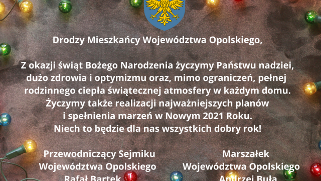 Z okazji zbliżających się świąt władze samorządowe województwa opolskiego składają mieszkańcom regionu serdeczne życzenia.