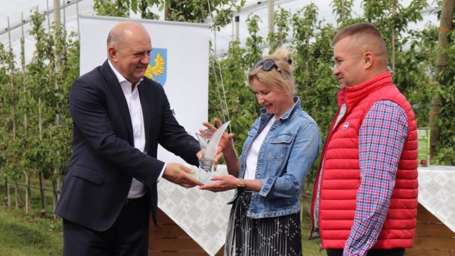 Gospodarz tego spotkania – Sady Lech Grudynia – to kolejny laureat, tym razem w kategorii „mój mały biznes”. Tym, co podbiło serca jurorów, były jabłka z Grudyni, dostępne przez 24 godziny na dobę w innowacyjnym i bezpiecznym w czasie pandemii jabłkomacie. Maria Lechoszest z Sadów mówi, że pomysł się spodobał. – Początkowo sami zastanawialiśmy się, jak to będzie wyglądało. A teraz ludzie przyjeżdżają i w dzień, i w nocy. Najwięcej przed i po pracy, a weekendy są po prostu szalone – śmieje się. Dodaje, że firma od września zamierza powiększyć tę ofertę.