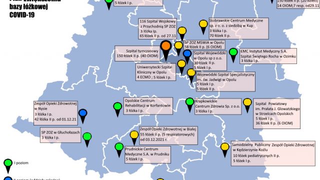 Mapa dot. szpitali COVID-19 w województwie polskim – dane obowiązują od03.12.2021 r.: