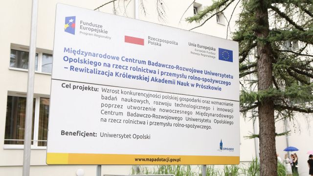 Międzynarodowe Centrum Badawczo-Rozwojowe Uniwersytetu Opolskiego powstało w ramach projektu pn. „Międzynarodowe Centrum Badawczo-Rozwojowe Uniwersytetu Opolskiego na rzecz Rolnictwa i Przemysłu Rolno-Spożywczego – Rewitalizacja Królewskiej Akademii Nauk w Prószkowie”. Projekt został dofinansowany w ramach Regionalnego Programu Operacyjnego Województwa Opolskiego na lata 2014-2020 kwotą blisko 31 mln zł, a całkowity koszt budowy, wyposażenia i aranżacji wyniósł ok. 45 mln zł.
