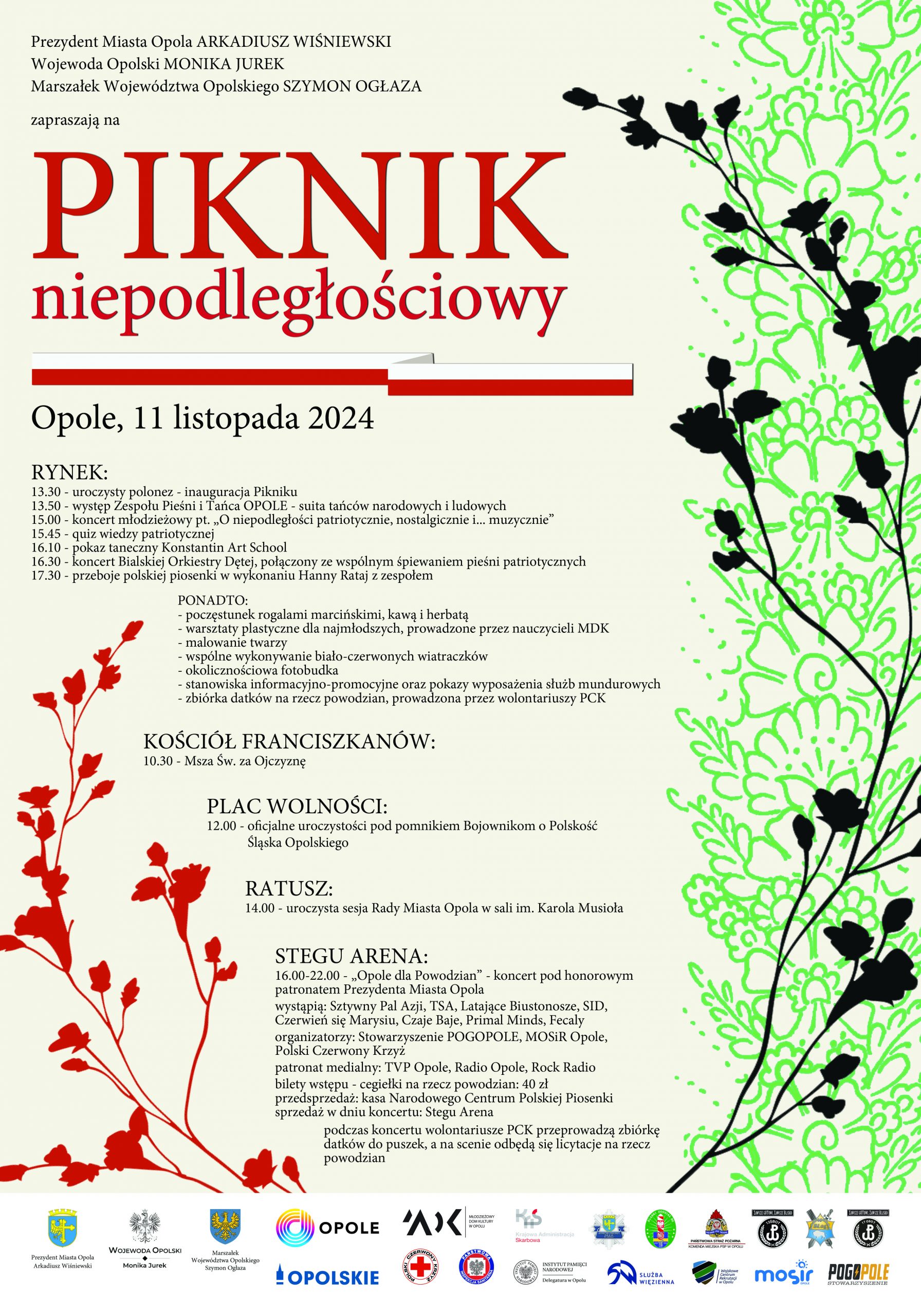 Rozpoczynamy mszą świętą za Ojczyznę w kościele ojców Franciszkanów, a oficjalne obchody rozpoczną się w samo południe pod Pomnikiem Bojownikom o Polskość Śląska Opolskiego, a już o godzinie 13.30 uroczysty polonez zainauguruje piknik niepodległościowy na opolskim rynku. Atrakcji nie zabraknie dla nikogo.