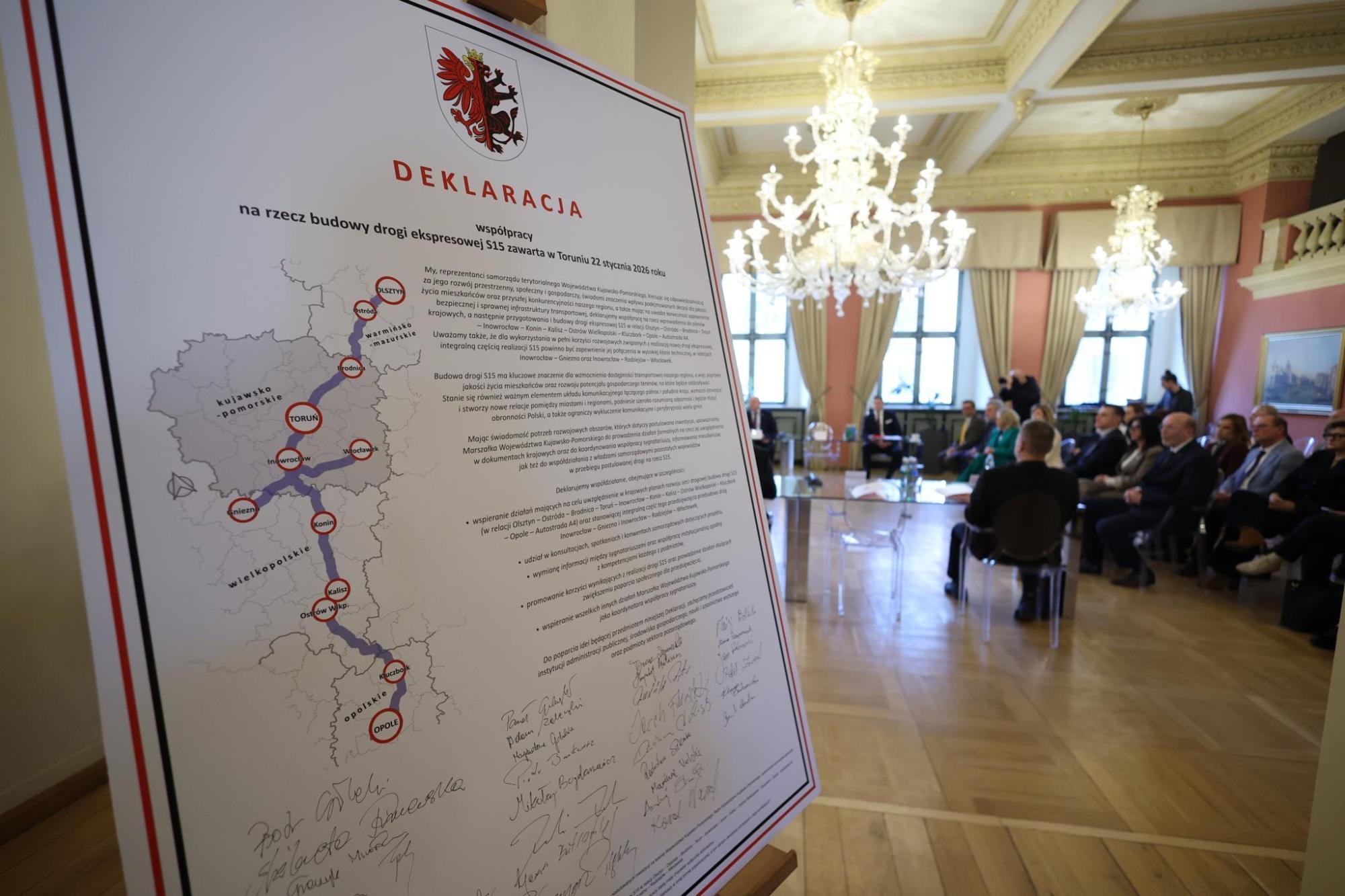 9 marca w Toruniu marszałkowie województw warmińsko-mazurskiego, kujawsko -pomorskiego, wielkopolskiego oraz opolskiego podpisali wspólny apel do rządu RP o podjęcie działań zmierzających do połączenia spójnym korytarzem transportowym północnej i południowej części kraju drogą ekspresową.