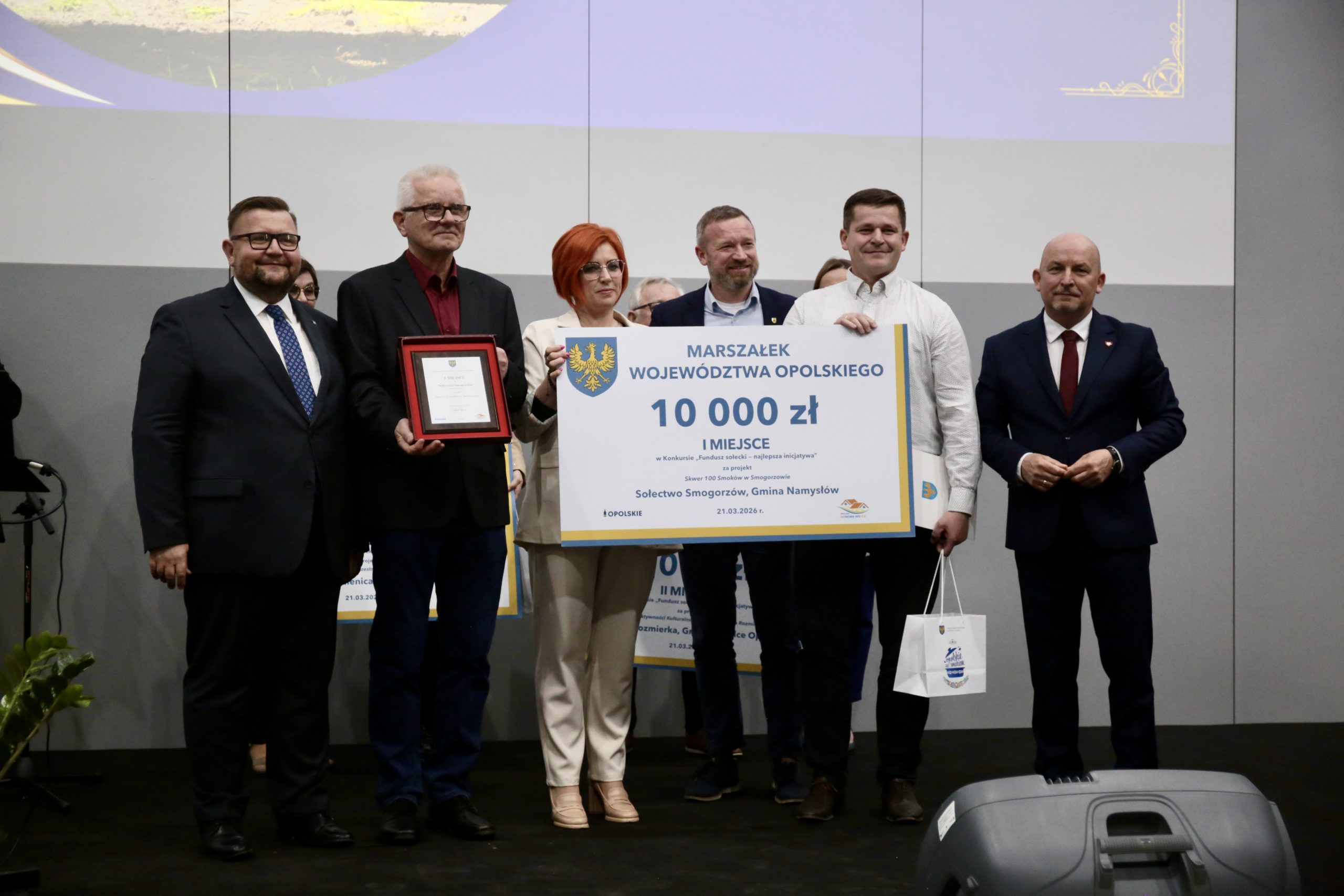 W tym roku pierwsze miejsce zdobył Smogorzów (gmina Namysłów), który otrzymał nagrodę w wysokości 10 000 zł. To sołectwo reprezentować nasze województwo w ogólnopolskim finale konkursu, który w tym roku odbędzie się w województwie podkarpackim. Jerzy Wierzchowski, honorowy prezes Stowarzyszenia Nasz Smogorzów wyjaśnił jak wyglądały działania przy zwycięskim projekcie “Skwer 100 smoków w Smogorzowie”: – Teren skweru w czasach, kiedy istniały PGR-y, był pięknym miejscem z nasadzeniami, ścieżkami, zadbanym i uporządkowanym. Kiedy PGR-y się rozpadły, miejsce popadło w ruinę, zarosło chaszczami i stało się wysypiskiem śmieci. Od 10 lat staraliśmy się przejąć ten teren, aby stał się własnością gminy i żeby nasza wieś mogła się tam wykazać. Od czterech lat intensywnie pracowaliśmy nad jego uporządkowaniem. Teraz mamy tam boisko sportowe, amfiteatr, który nazywa się Dolina Miłości i kino letnie, gdzie prezentujemy dzieciom filmy w plenerze. Łącznie przepracowaliśmy blisko tysiąc godzin. Zainwestowaliśmy w skwer 125 tysięcy złotych – tłumaczył.
