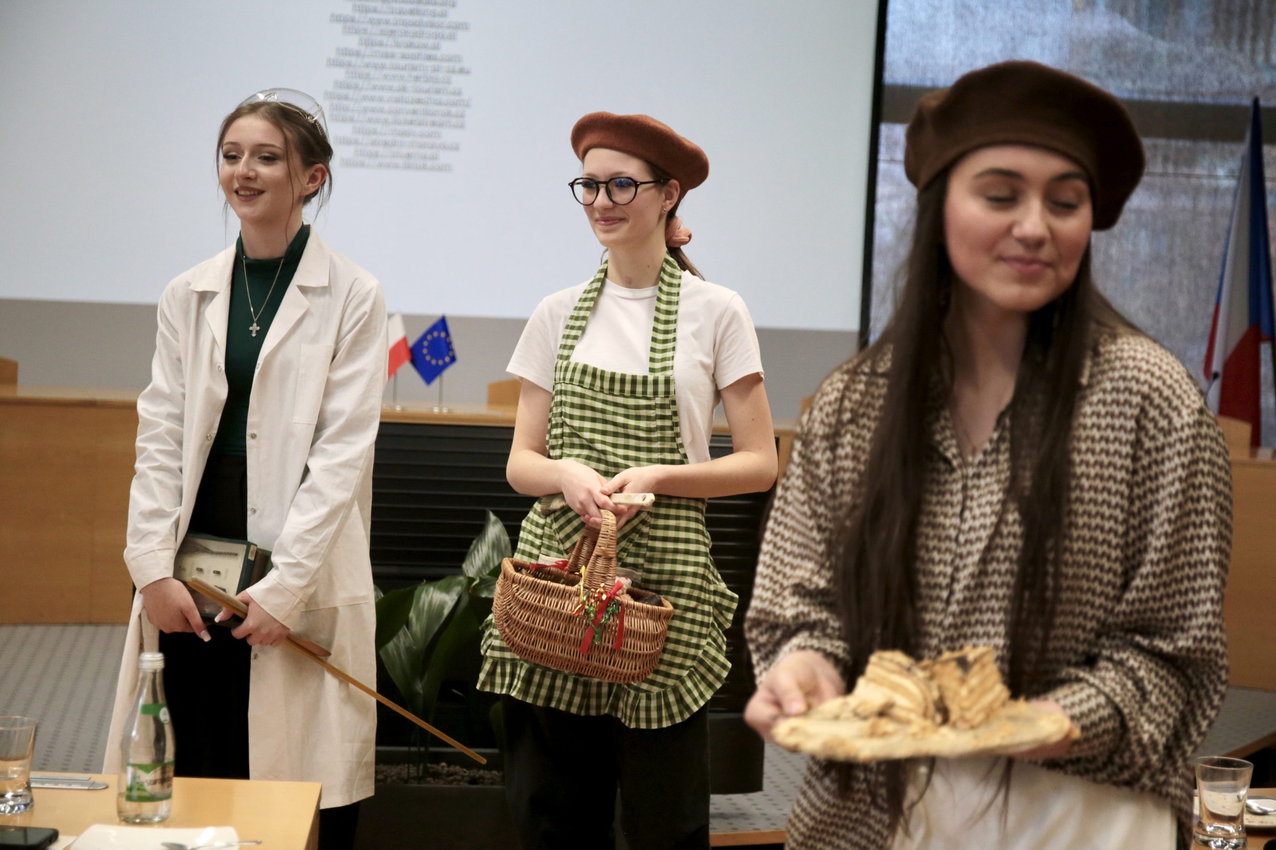 – Nasza prezentacja była o Kraju Ołomunieckim, a wybrałyśmy go, bo uznałyśmy, że jest on najbardziej ciekawy, ponieważ jest tam dużo atrakcji, które mogłyby zaciekawić młodzież. Podzieliłyśmy się rolami i każda z nas przygotowała swoją kategorię tematyczną. Miałyśmy specjalne przebrania związane z prezentacją. Gdy mówiłyśmy o wojnie wystąpił żołnierz, gdy omawiałyśmy sztukę, to malarz, a o nauce mówił naukowiec. Jedna z nas przebrała się też za kucharza, gdy mówiła o kuchni i tradycyjnych daniach – tłumaczyła Julia Szpara ze zwycięskiego zespołu.