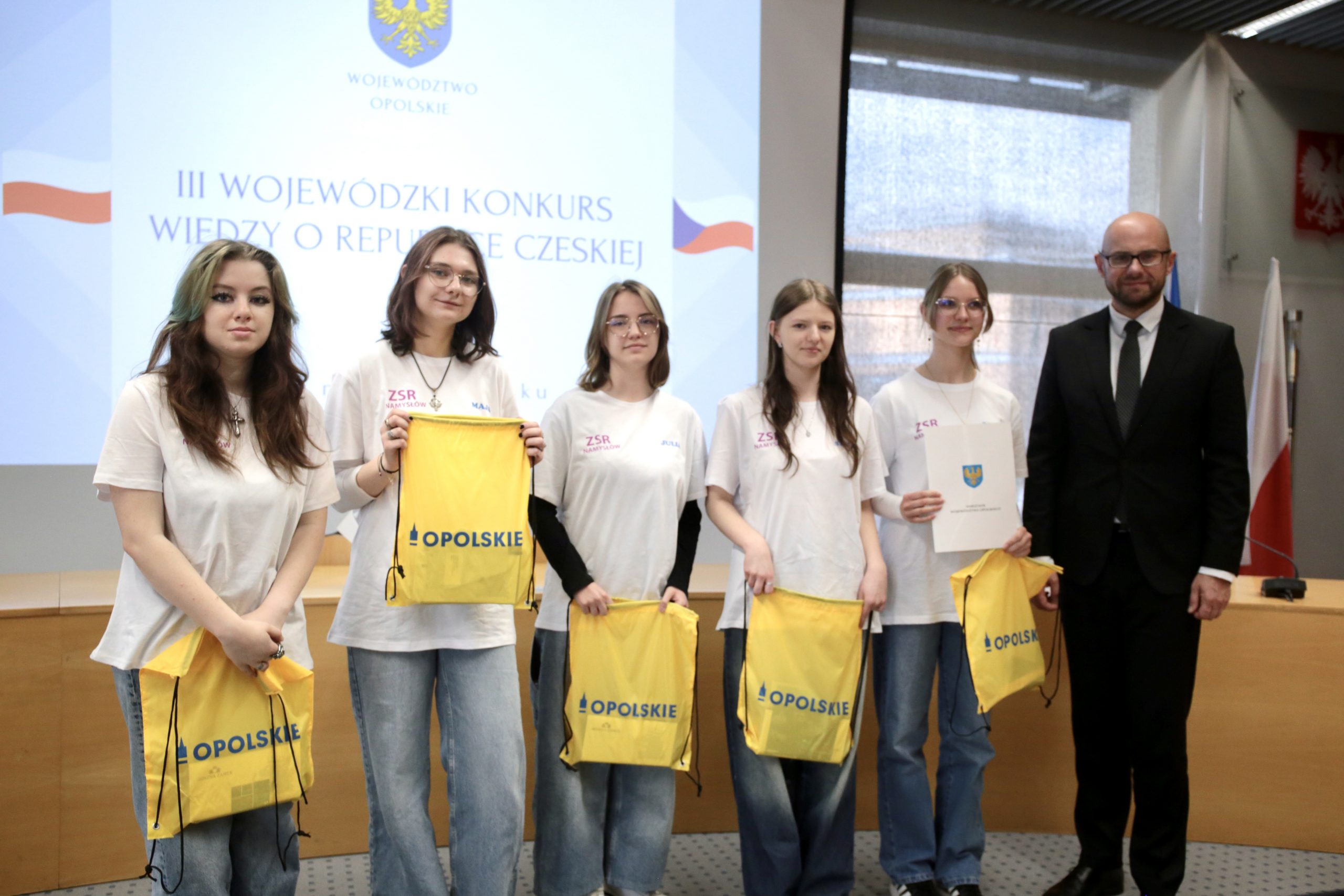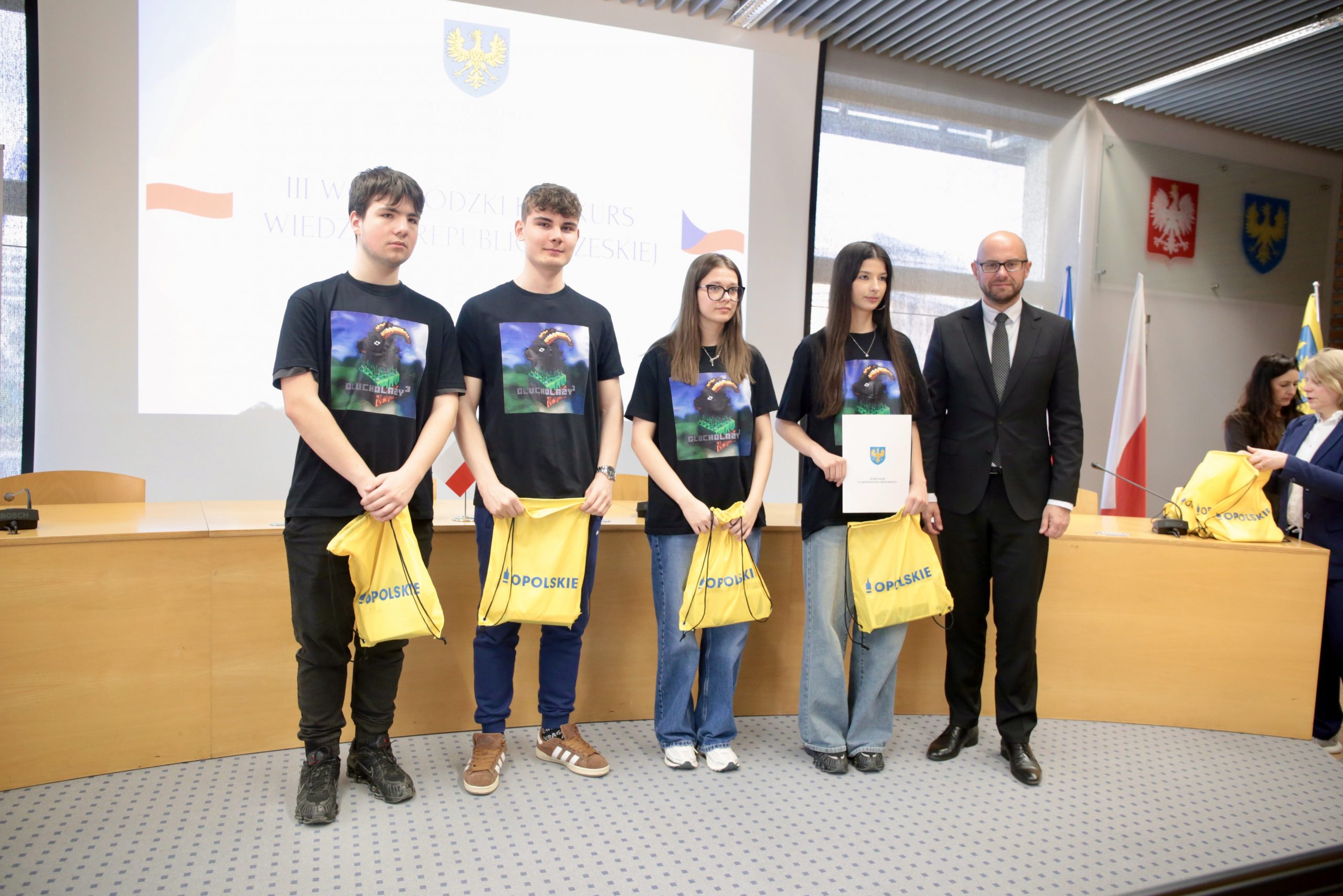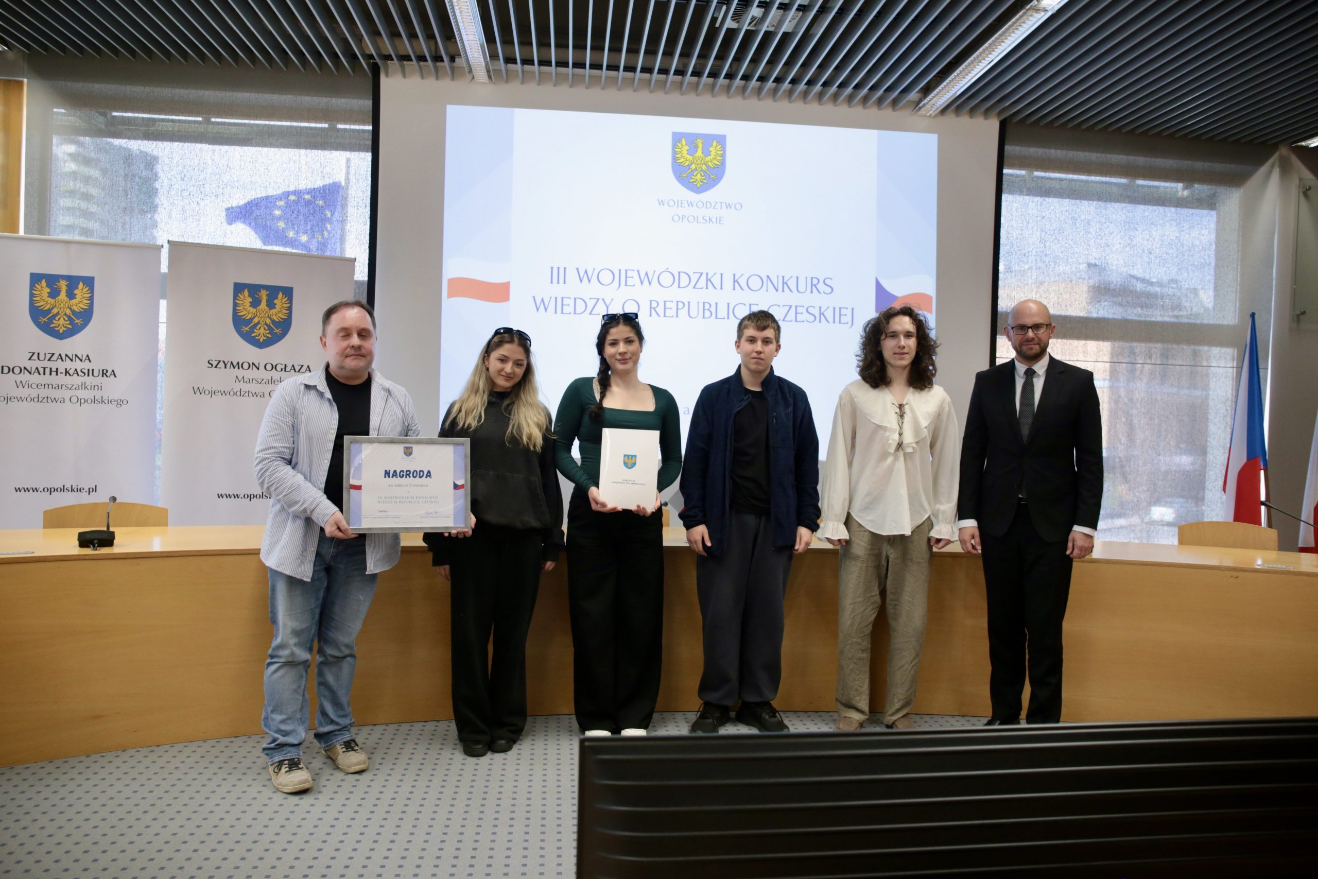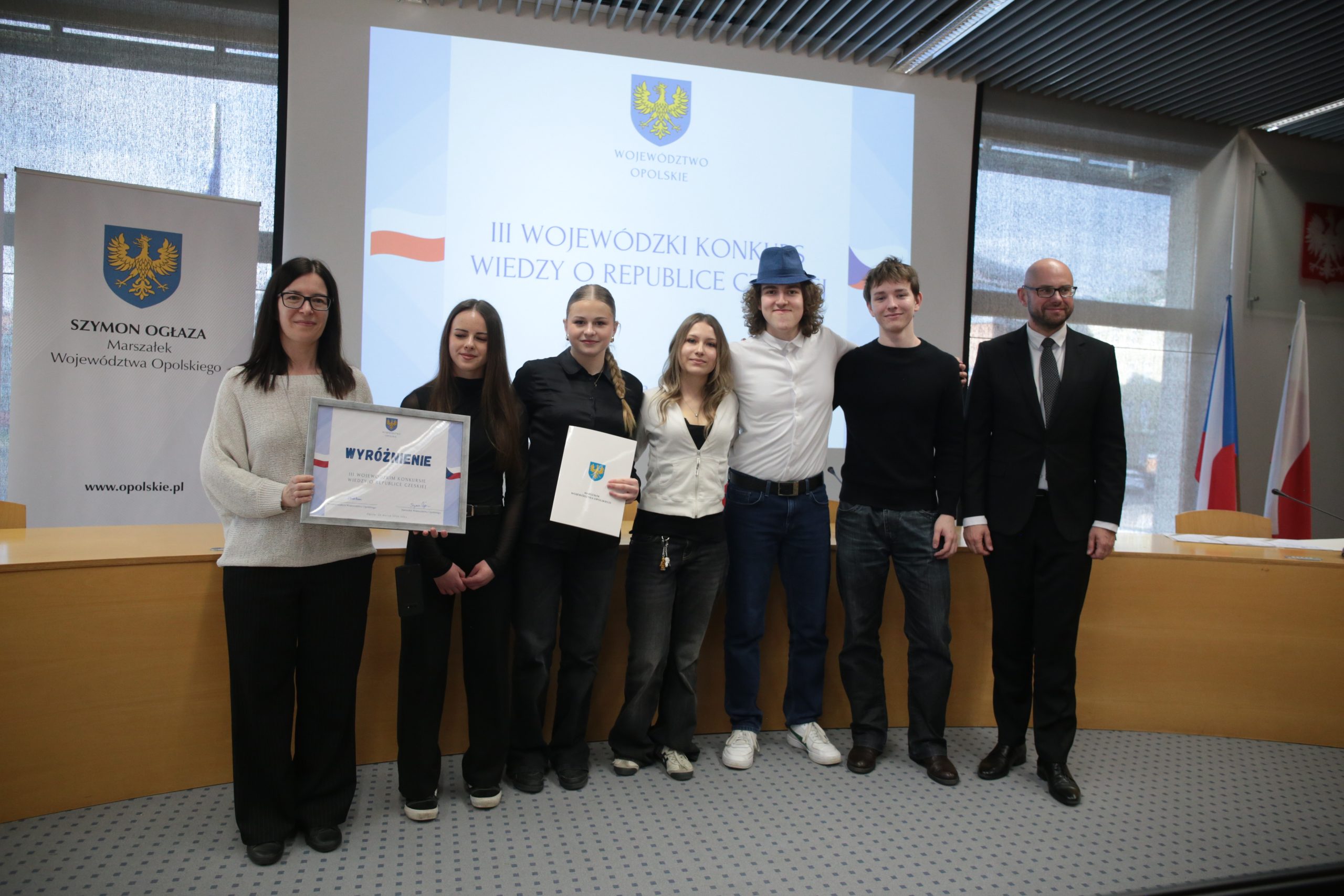 W Urzędzie Marszałkowskim Województwa Opolskiego odbył się finał III Wojewódzkiego Konkursu Wiedzy o Republice Czeskiej. Wydarzenie zgromadziło kilkanaście drużyn uczniów szkół ponadpodstawowych z całego regionu, którzy wcześniej pomyślnie przeszli etap eliminacyjny. Podczas finału poznaliśmy zwycięzców, których czeka wyjazd do Czech.